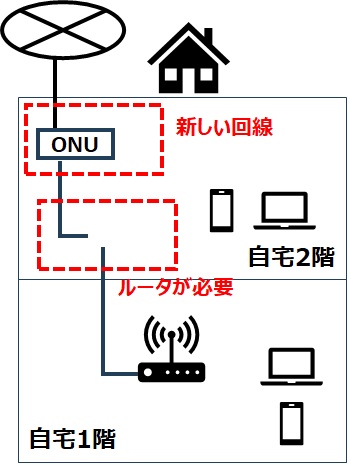 新しい回線では、ONU(光回線終端装置)のみ提供され、ルータは自前で用意する必要がありました。