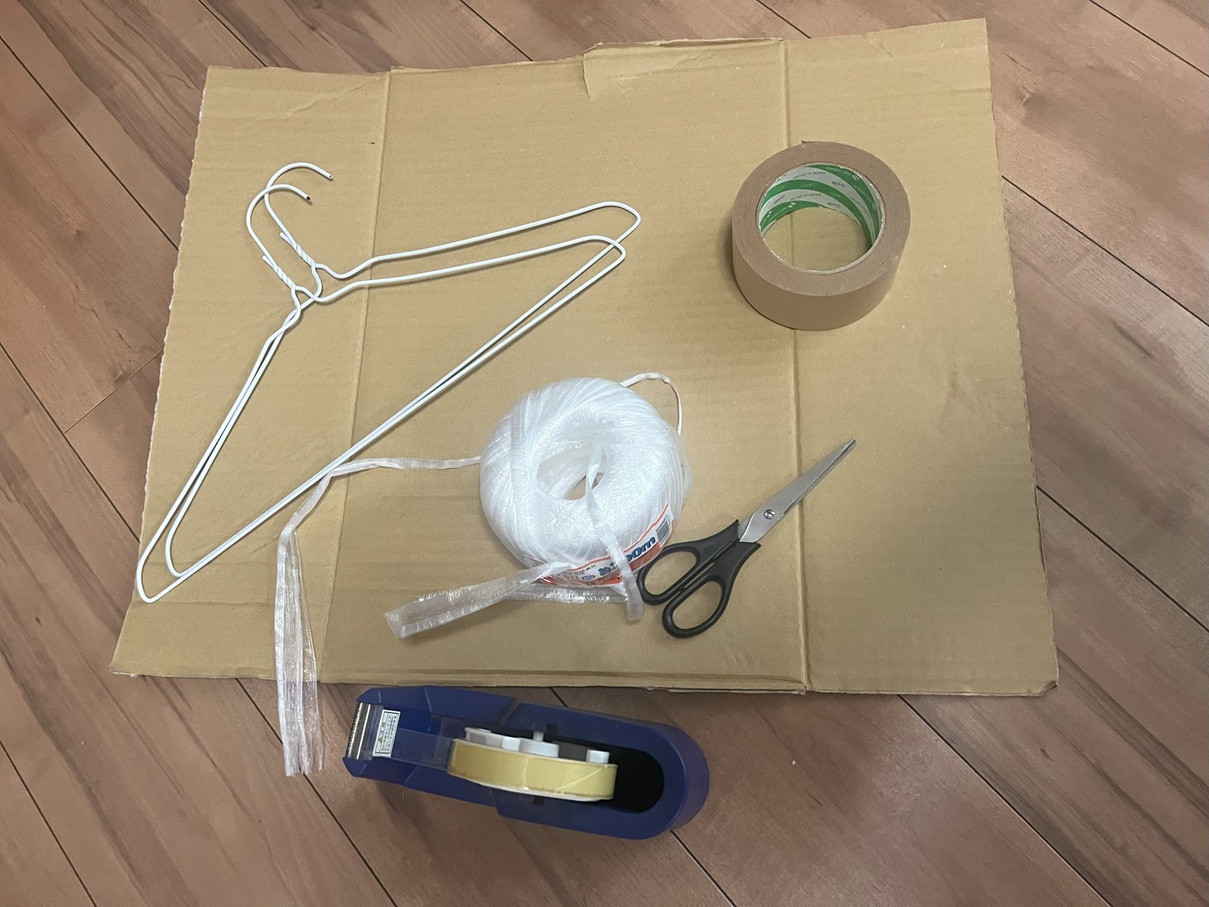 - テープ(セロテープと布テープやガムテープなど、強度のあるもの)