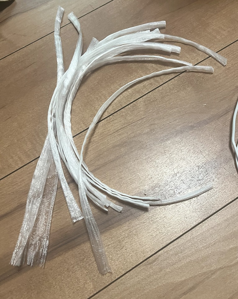 ▪️ビニール紐を約30〜40cm程度の長さで10〜12本ほど切ります。