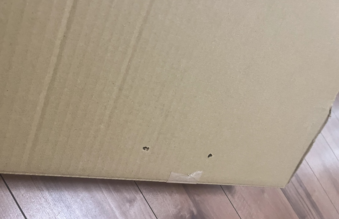 ▪️ダンボールの真ん中より少し下に、ハンガーの先を通すための穴をあけます。