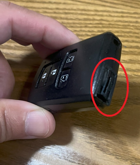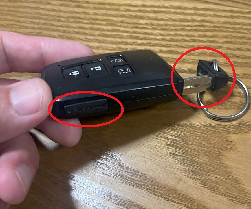 スマートキーの横にある小さなボタンを押すと、金属のカギ(メカニカルキー)がスッと引き抜けます。