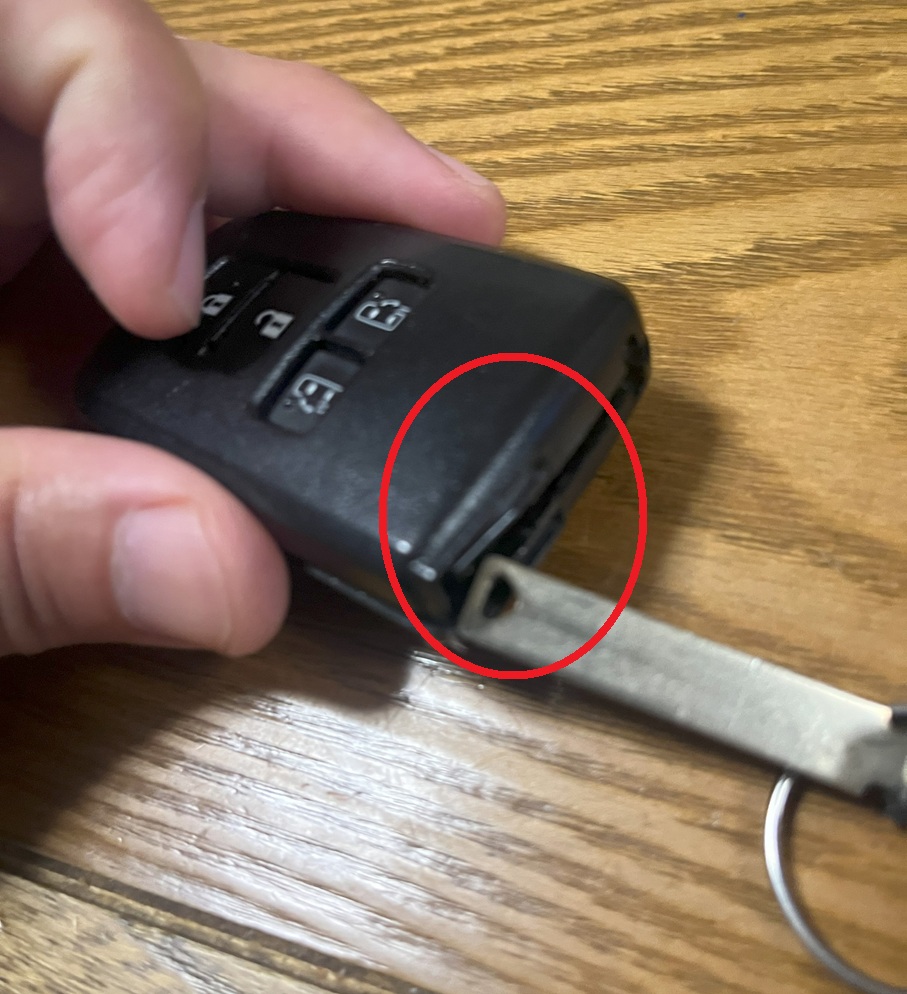 メカニカルキーを抜いたあとのスキマに、マイナスドライバーやメカニカルキーを差し込んで「グッ」と開きます。