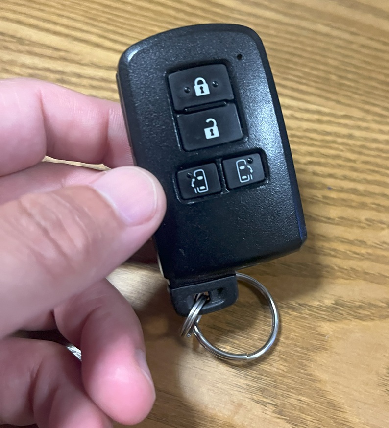慌ててスマートキーをポケットから取り出して確認してみると、普通に見えるけど、電池切れってやつのようです。